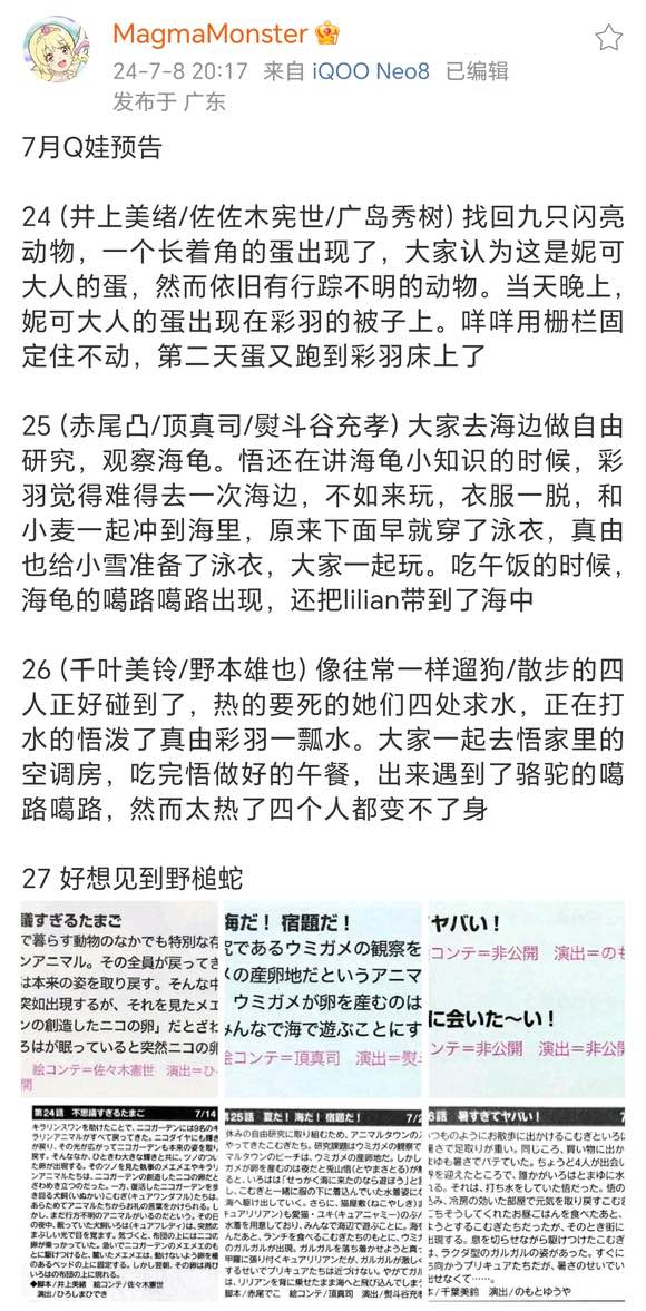 - 26话 结尾那段是:立马变身面对噶路噶路的Precure,由于天气太炎热而无法发挥平时的力量(不是变不了身)